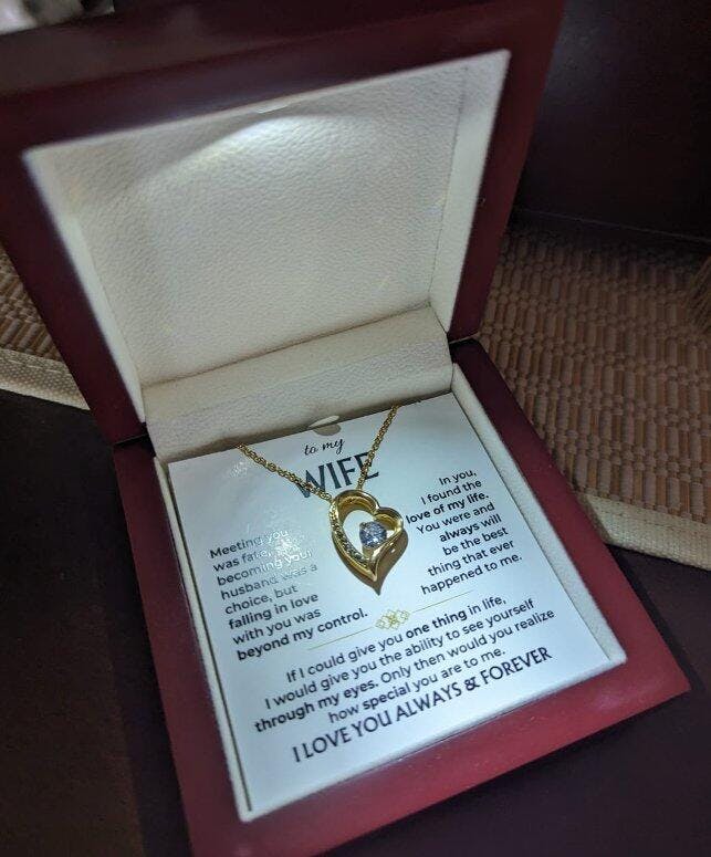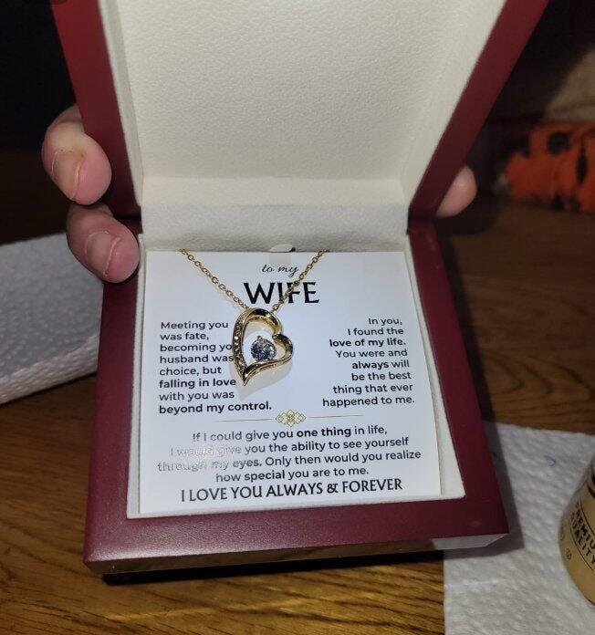 💖 To My Wife – Heart Pendant Necklace with Love Message Card